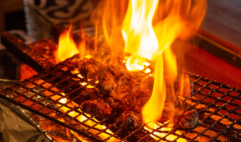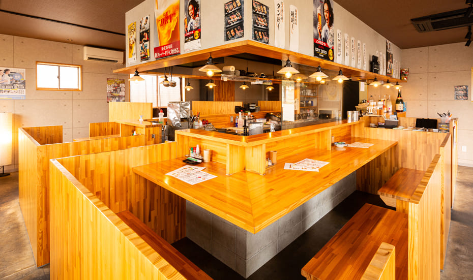 焼き場を囲むように配置されているカウンターは ライブ感と活気があり、食欲がそそられる特等席。