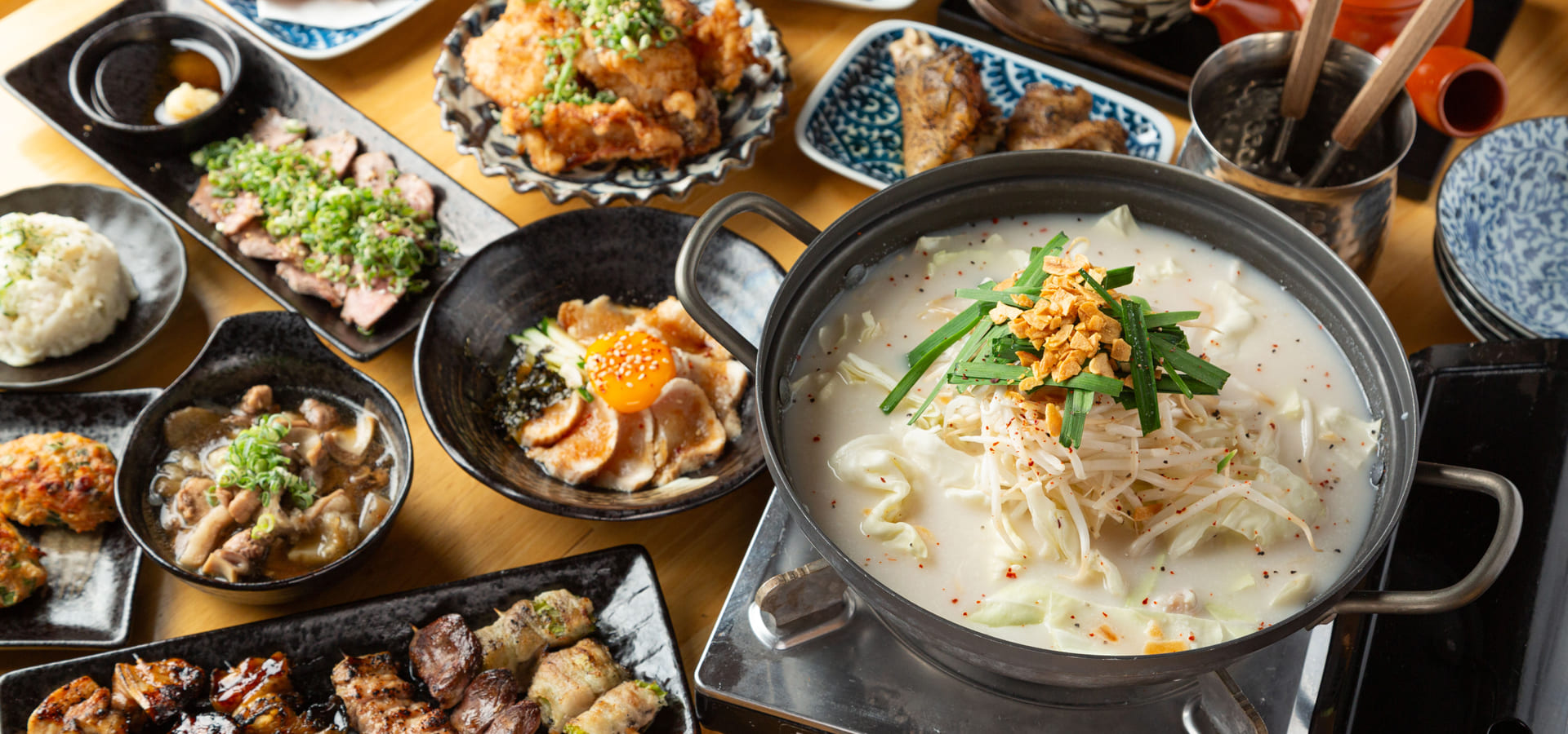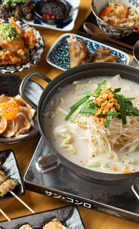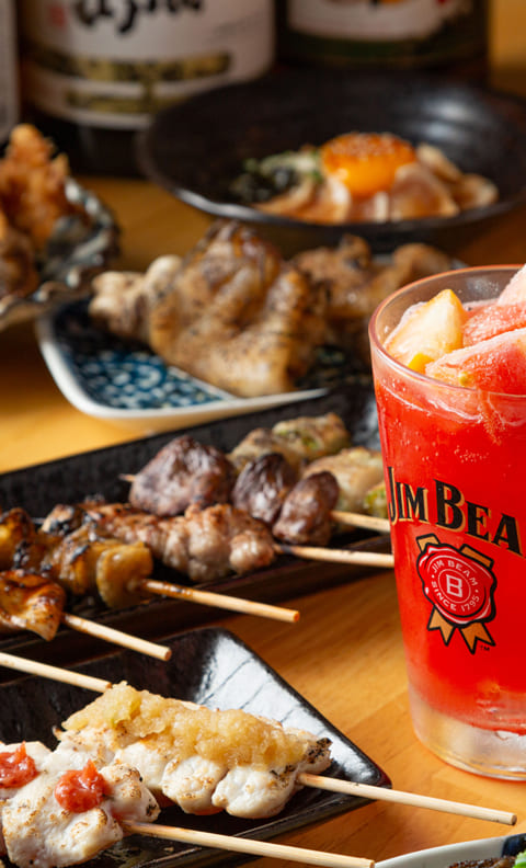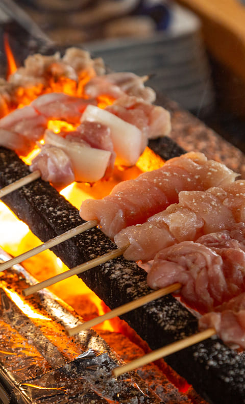 鶏、豚の串をメインとして、すべて手作りの季節食材を使った一品を置き、