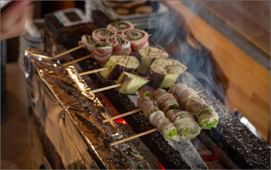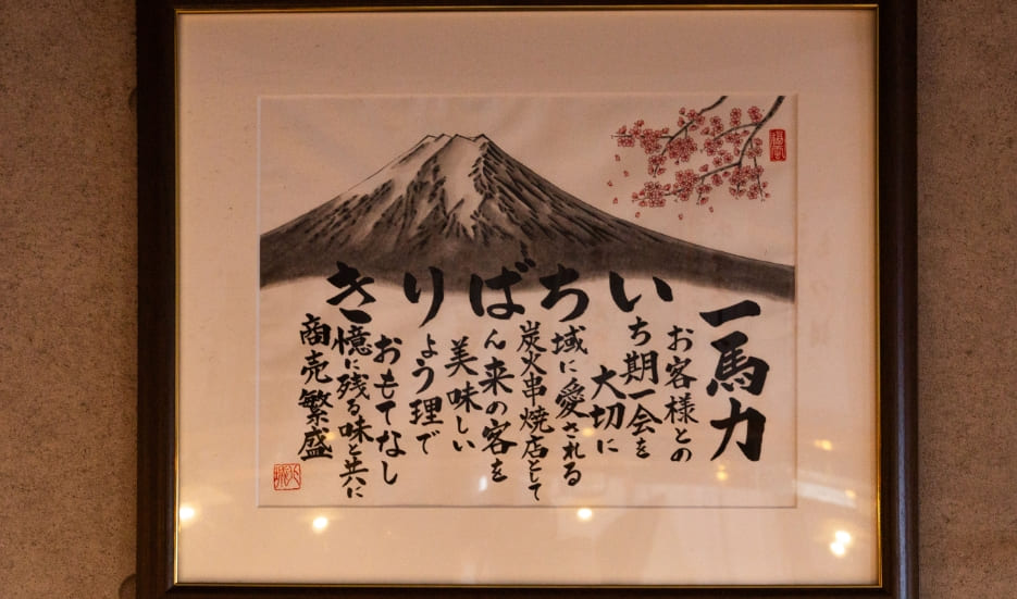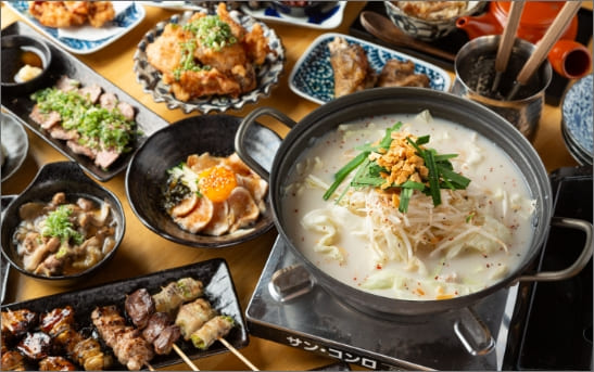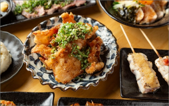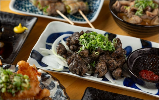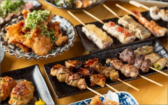 鶏、豚の串をメインとして、すべて手作りの季節食材を使った一品を置き、