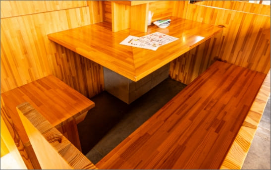 ゆっくりと落ち着いて過ごしていただけるテーブル席は少人数のグループやご家族連れ、ご友人と過ごしていただくのに最適。